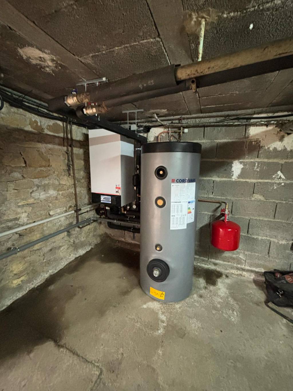 Le constat de départ était classique en rénovation : une chaudière fioul vieillissante, des coûts de combustible élevés, une dépendance aux livraisons et une installation devenue énergivore. Le client souhaitait conserver ses radiateurs existants tout en réduisant durablement ses factures et en modernisant son système de chauffage.