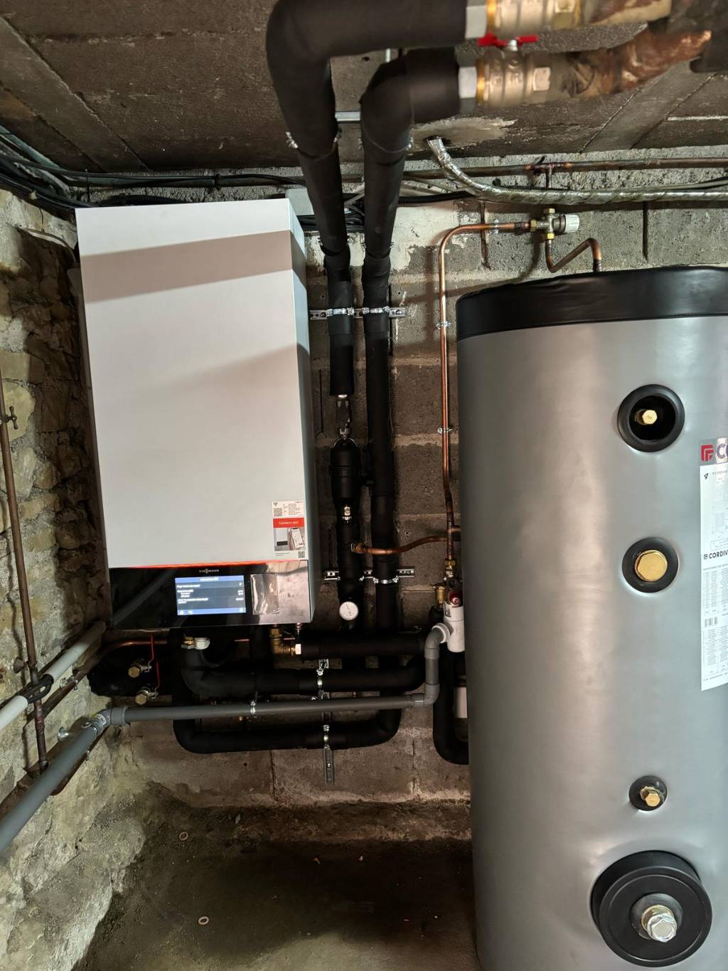 Nous avons apporté une réponse complète en déposant la chaudière fioul et en installant une Viessmann Vitocal 151-A, parfaitement adaptée à un fonctionnement sur réseau radiateurs.