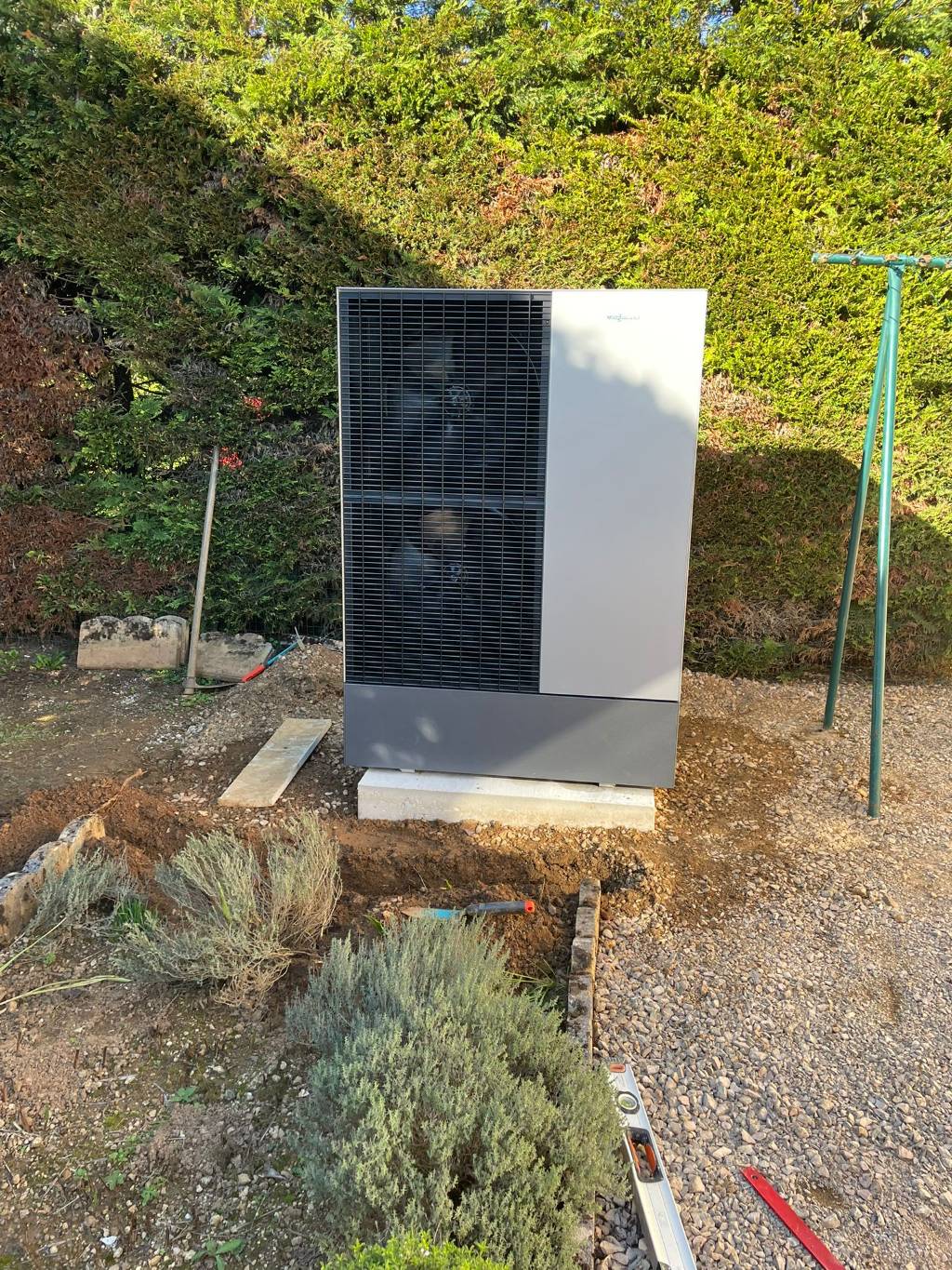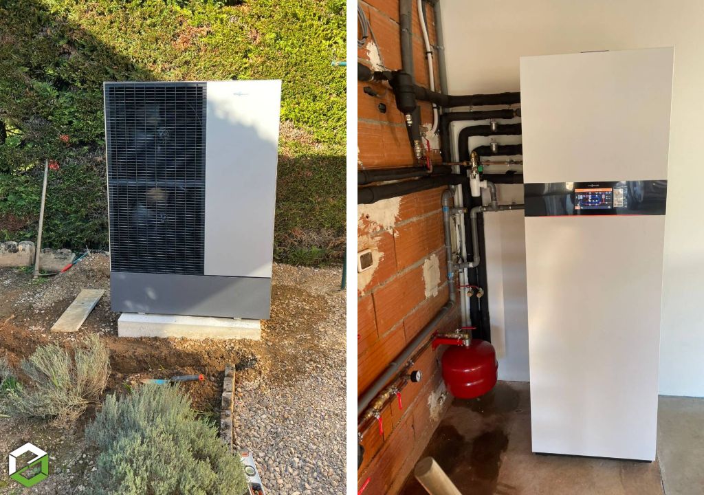 Dans le cadre de cette rénovation, nos clients ont remplacé leur ancienne chaudière fioul par une pompe à chaleur air/eau Viessmann Vitocal 151-A, avec production d’eau chaude sanitaire intégrée.