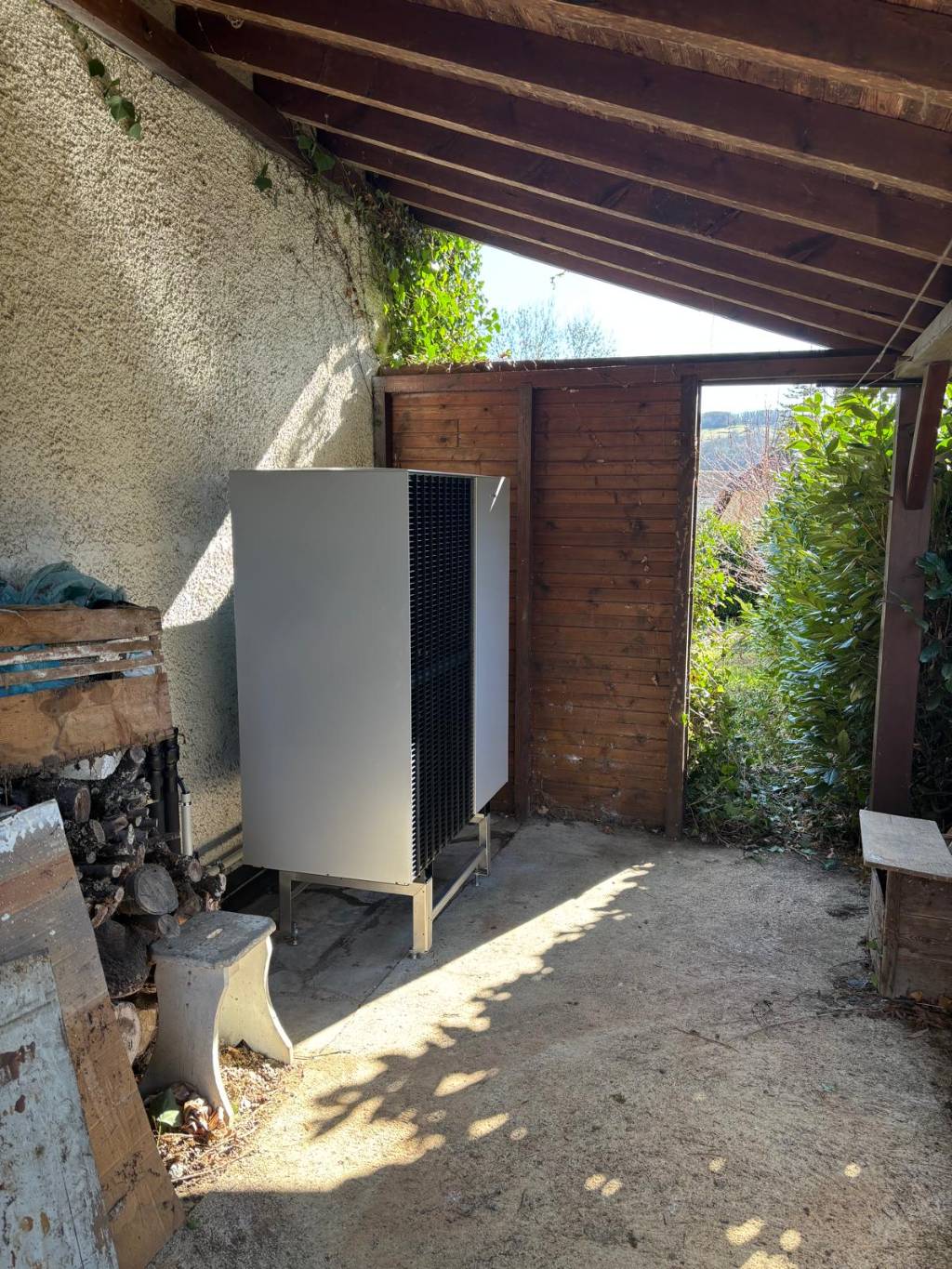 La pompe à chaleur assure désormais le chauffage de l’habitation ainsi que la production d’eau chaude sanitaire grâce à son ballon intégré, offrant une solution compacte et performante.