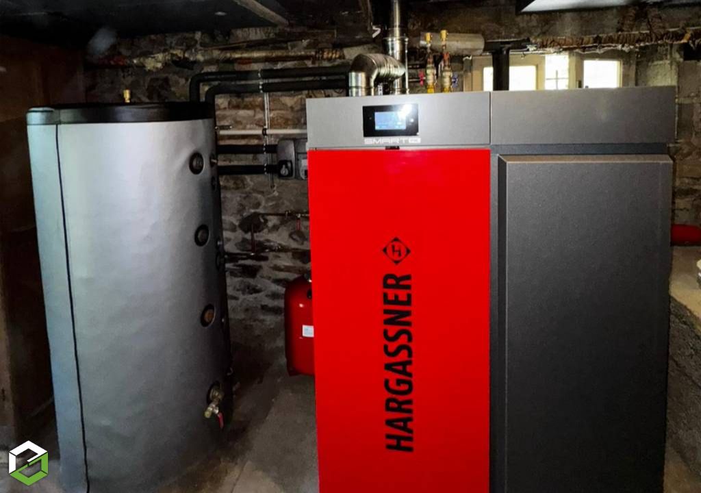 Dans le cadre d’un projet de rénovation énergétique, nous avons réalisé le remplacement d’une chaudière fioul par une chaudière à granulés Hargassner Smart PK17, destinée uniquement au chauffage du logement.