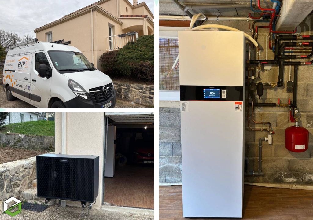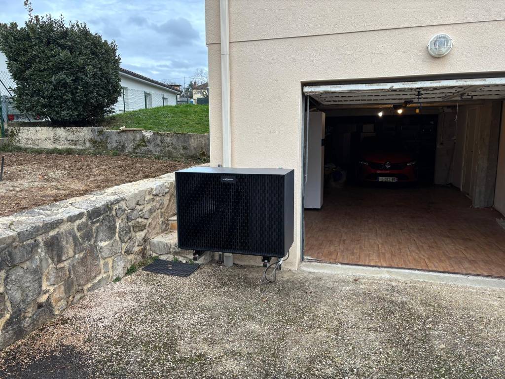 Dans le cadre d’une rénovation, nous avons remplacé une chaudière gaz par une pompe à chaleur air/eau Viessmann Vitocal 222-S, assurant le chauffage et la production d’eau chaude sanitaire.