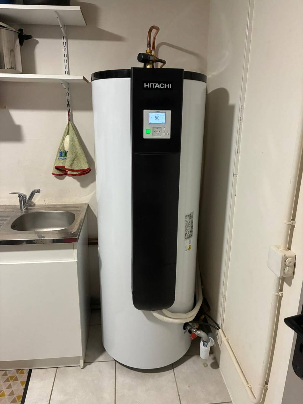 Nous avons réalisé l’installation d’un chauffe-eau thermodynamique Hitachi Yutampo, équipé d’un ballon de 270 litres, destiné à la production d’eau chaude sanitaire.